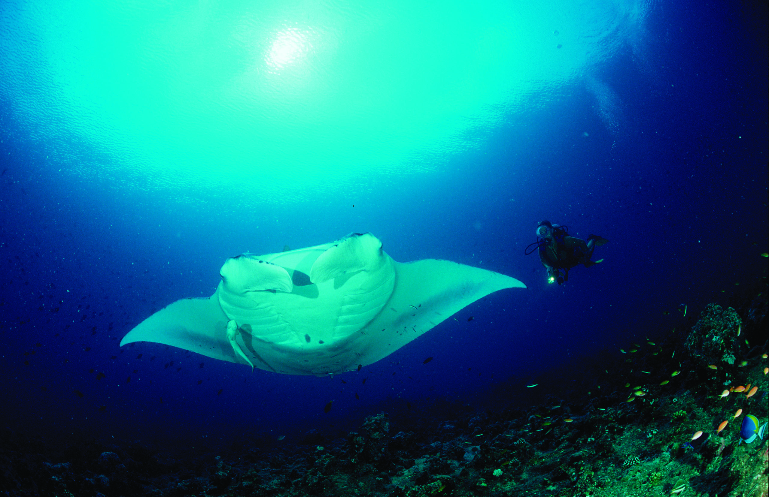 “With wings spanning up to seven metres, it’s mesmerising to watch these extraordinary creatures pirouetting through the water.”