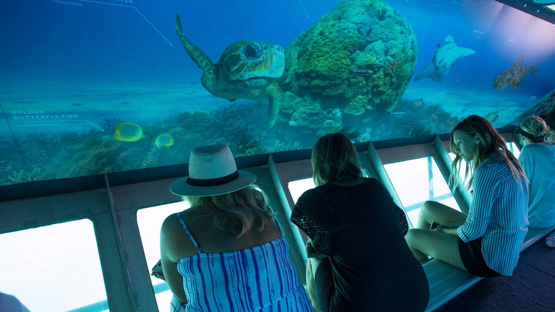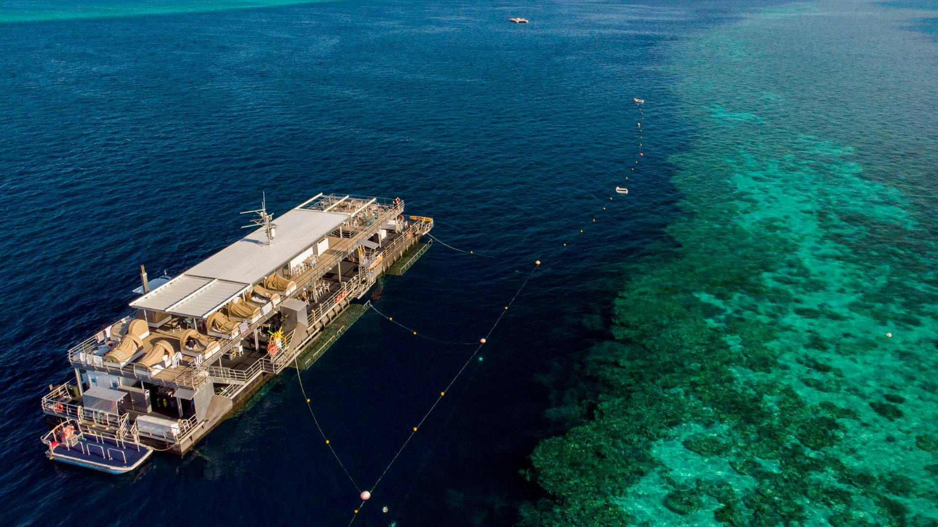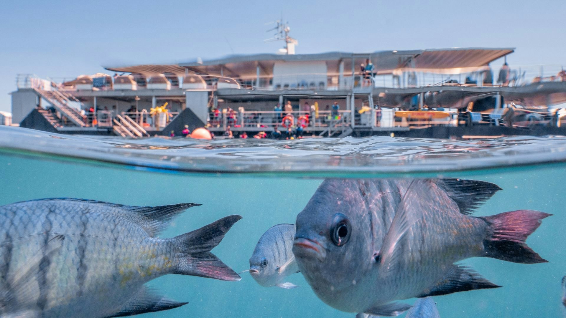 Reefworld pontoon sits above colourful Hardy Reef, one of the many thousand small reefs that make up the Great Barrier Reef. A coral wall, home to an ecosystem of magnificent corals and marine life runs adjacent to the pontoon. Hundreds of fish species at Hardy Reef will surprise and delight you – especially the giant groper.