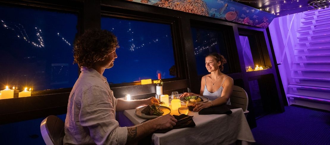 Enjoy an exclusive dinner for two in our Underwater Observatory.